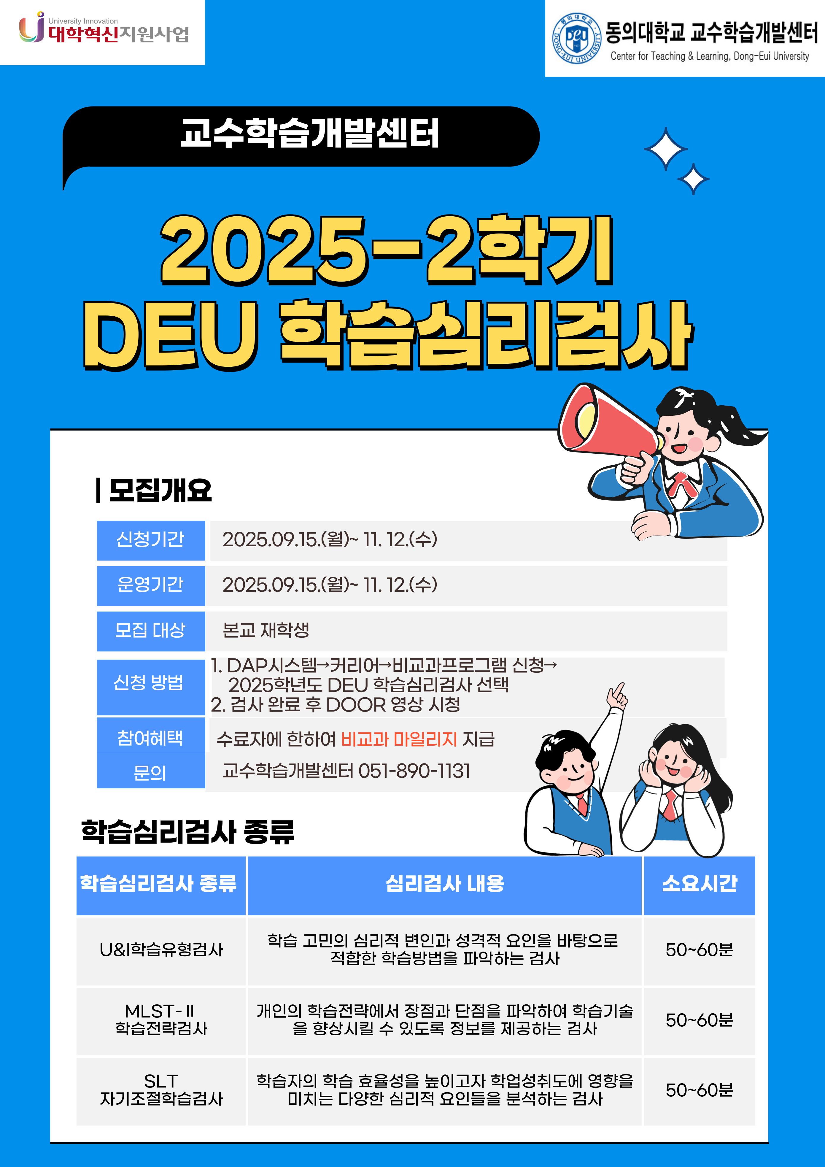 [대학혁신지원사업] 2025-2학기 DEU 학습심리검사 신청 안내(1차)